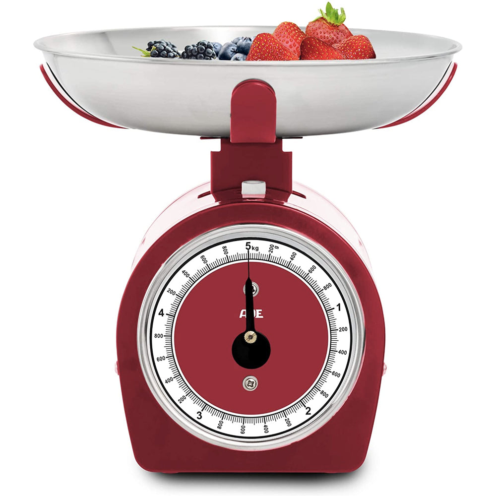 Báscula de cocina analógica de acero inoxidable con encantador aspecto retro de los años 50. De alta calidad de metal lacado para una larga vida útil. Color: rojo