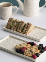La línea Mason Cash In the Forest está intrincadamente grabada con escenas del bosque inspiradas en cuentos populares de mediados del siglo XIX. Este plato de 30 cm tiene un diseño elevado, lo que hace que los alimentos, como el queso o pancitos, sean más fáciles de escoger. Puede ser usado para picoteos, para la hora del té o lucir galletas o pasteles.
