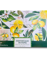 Individuales de papel con motivos de limones ideales para una mesa entretenida y almuerzos al aire libre, el complemento ideal para tu mesa.