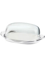 Una elegante mantequillera, compuesta por una práctica base y una bella campana transparente. Su tamaño adecuado y su práctico diseño la convierten en un objeto de uso funcional y fácil de guardar.