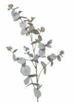 Rama artificial con tallo de alambre recubierto en plástico y hojas de tela con recubrimiento impermeable.
