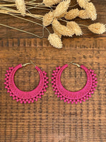 Aros hechos a mano con rafia y mostacillas. Un complemento que no puede faltar!