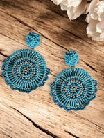 Aros hechos a mano con rafia y mostacillas. Un complemento que no puede faltar!