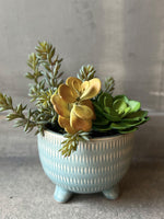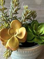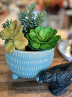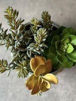 Arreglo listo de suculentas artificiales. Este arreglo viene con la maceta incluída, es ideal para terraza o interior, como centro de mesa.