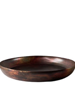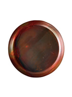 Bandeja redonda de metal color cobrizo gastado. Combinalo con velas y accesorios para crear un centro de mesa único.