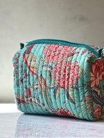 Estuche con exterior de tela, forro interior de algodón y cierre, ideal para guardar sus artículos imprescindibles y elementos de maquillaje.