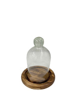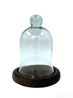 Campana redonda con base de madera. Ideal para decorar una mesa lateral o repisa. Compleméntalo con nuestros accesorios de decoración.
