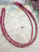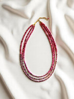COLLAR TELA TRIPLE FUCSIA DORADO