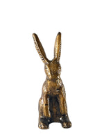 Figura de conejo de metal fundido con un tallado a mano en dorado. Tiene una base de felpa para cuidar tus superficies. Ideal para pisa papeles, decorar centros de mesa o cualquier rincón de tu casa!