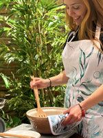 Hermoso delantal hecho de algodón tejido natural. Con impresiones naturales, este delantal será tan práctico como decorativo en tu cocina.