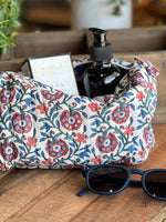 Estuche con exterior de tela, forro interior de algodón y cierre, ideal para guardar sus artículos imprescindibles y elementos de maquillaje.