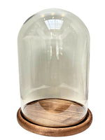 Fanal redondo con base de madera. Ideal para decorar una mesa lateral o repisa. Compleméntalo con nuestros accesorios de decoración.