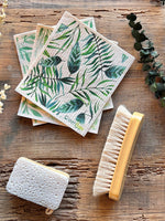 Set paños: Apto para lavado en lavadora. Al terminar su vida útil, se puede cortar en pedacitos y enterrar en el jardín.