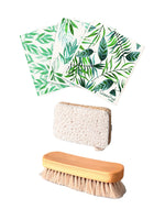 La combinación perfecta que no puede faltar para la limpieza! Este set contiene un cepillo para ropa, una esponja para cocina y un set de 3 paños esponja.