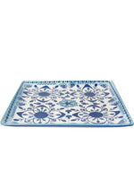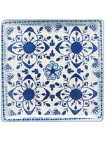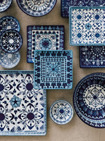 Un diseño de mosaicos en una mezcla de inspiración mediterránea de azul y blanco invita a que fluyan los buenos momentos para todos los que se reúnen a la mesa. Líneas onduladas de color saturado bailan sobre la superficie en pinceladas pictóricas, creando una expresión de abundante alegría.