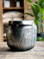 Portamacetero de metal galvanizado con terminación envejecida en tintes grises