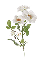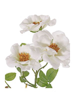 Flor artificial con pétalos hechos de seda, tallo de alambre recubierto en plástico y hojas de tela con recubrimiento impermeable.