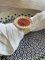 Servilletero tejido a mano por artesanas en Colombia en fibra natural de palma de Iraca.