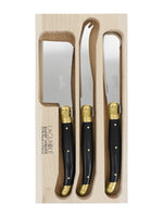 2 cuchillos para queso y 1 cuchillo mantequilla.