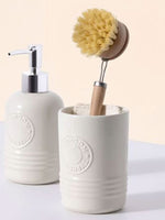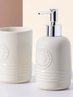 Dale vida a tu hogar y crea un ambiente único con este dispensador de jabón y vaso en color crema. Ideal para complementar con otros artículos, este dispensador mantiene el jabón listo con estilo, mientras que el vaso complementario crea un hogar organizado.