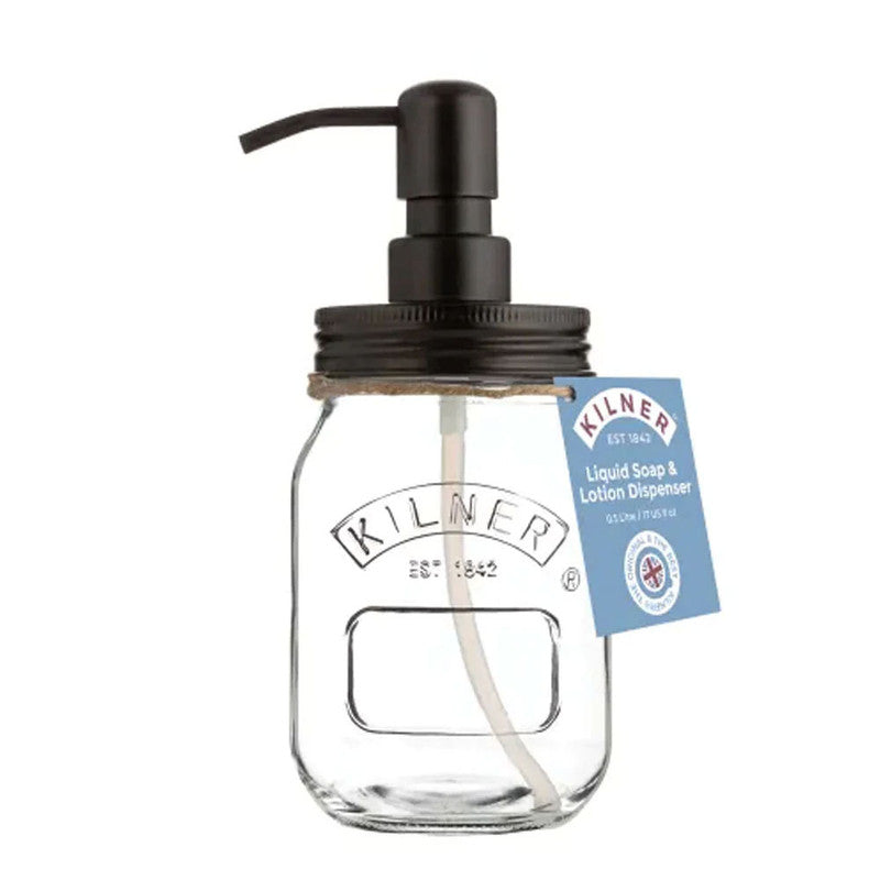 El dispensador de loción y jabón líquido perfecto para usarse en la cocina y el baño. El mecanismo de la bomba está hecho de material de acero inoxidable 18/10 resistente a la corrosión y revestido con un elegante acabado negro mate. El Set incluye. 1 frasco Kilner de 0,5 litros más una bomba de acero inoxidable.