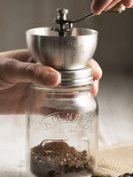 ¿Fanático del café recién molido? Este increíble Molinillo Manual para Café de acero inoxidable se adapta perfectamente al frasco de vidrio para un resultado espectacular. Sólo muele los granos y luego guarda el café para mantener todo su sabor hasta que llegue a tu taza.