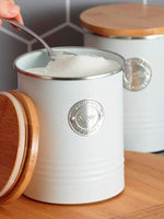 Contenedor de acero con tapa de bambú. Resistente y muy liviano, ideal para organizar y decorar la cocina. La tapa cuenta con un sello hermético que lo hace ideal para almacenar tus productos frescos por más tiempo! Tiene capacidad de 1lt