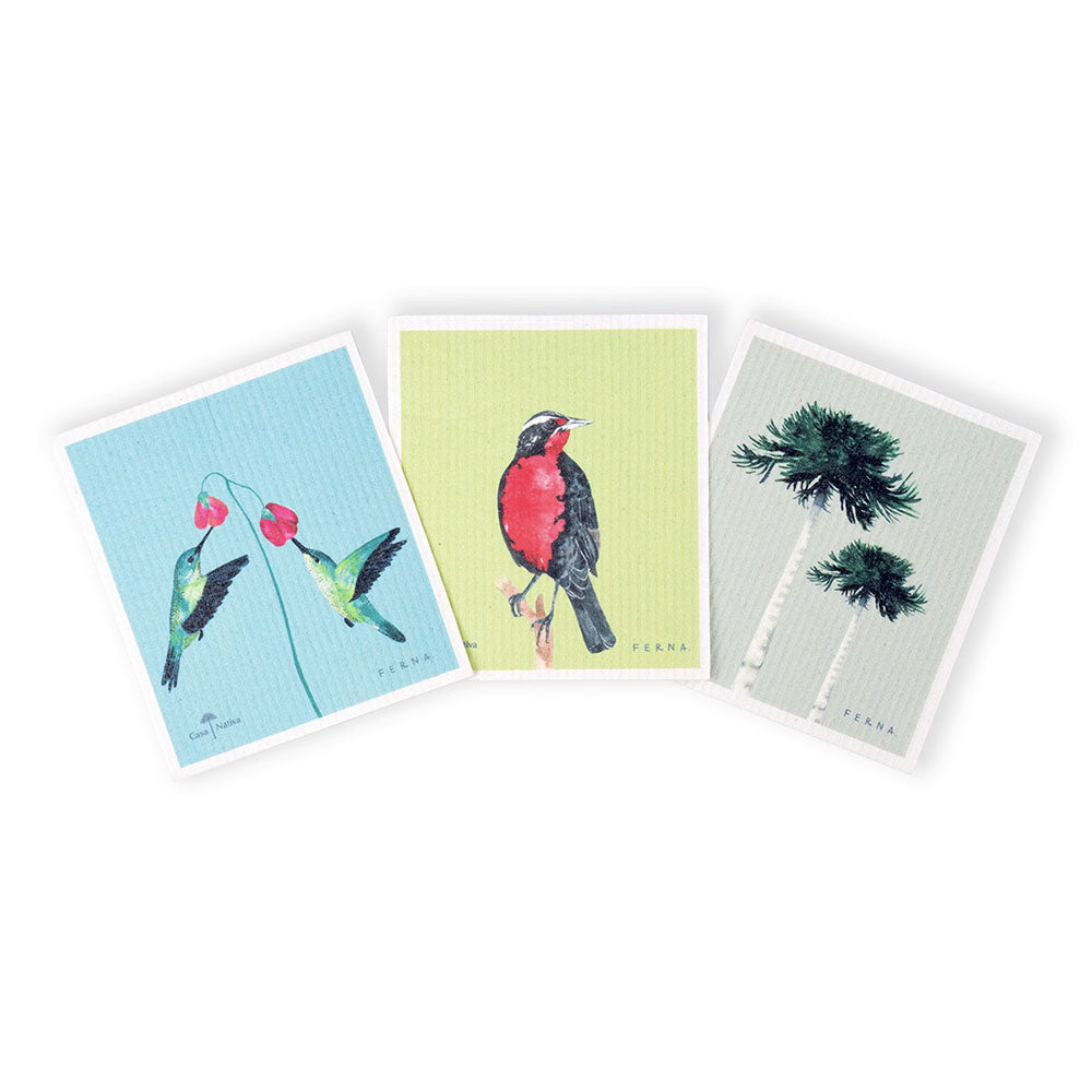Colección de 3 Paños Esponjas 100% compostables en el hogar. Son my eficientes! Pueden absorver hasta 20 veces su peso y, gracias a la celulosa, es de secado rápido. Se lava en lavadora y sale como nuevo! Es durable para que te acompañe más tiempo. Los colores y diseños se mantienen intensos.