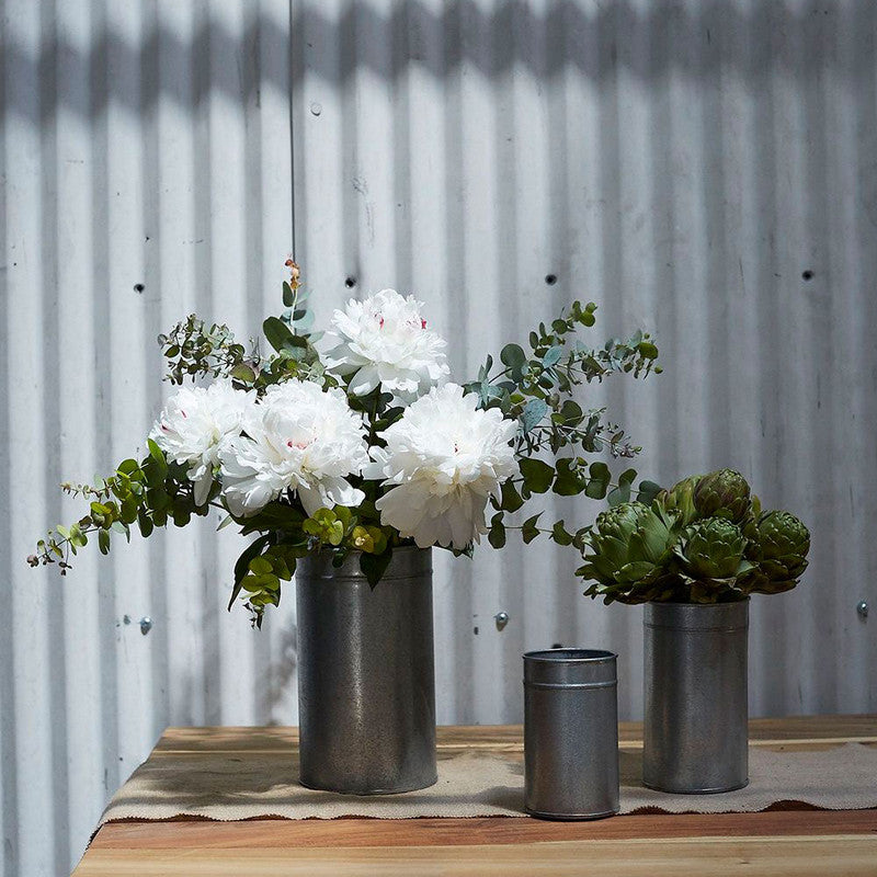 Florero de metal galvanizado.