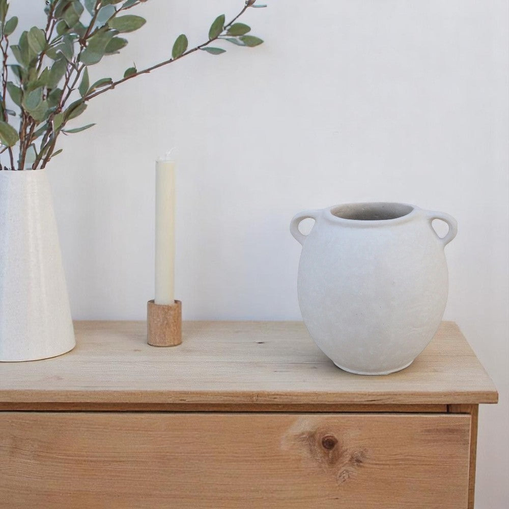 El jarrón de papel maché en blanco natural es una encantadora adición a la decoración de cualquier hogar. Su diseño artesanal con acabado blanco natural ofrece un aspecto neutro y versátil, perfecto para complementar diversos estilos de interior. Este jarrón ecológico es ideal para exhibir flores secas, añadiendo un toque rústico y elegante a su espacio. Su tamaño moderado lo hace ideal para diversos lugares, desde mesas hasta estanterías. Combinando sostenibilidad con atractivo estético, este jarrón realzará su hogar con su diseño simple pero sofisticado.