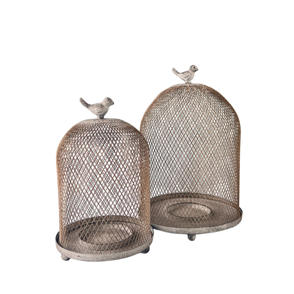 Campana redonda de metal tejida con base. Ideal para decorar una mesa lateral o repisa. Compleméntalo con nuestros accesorios de decoración.