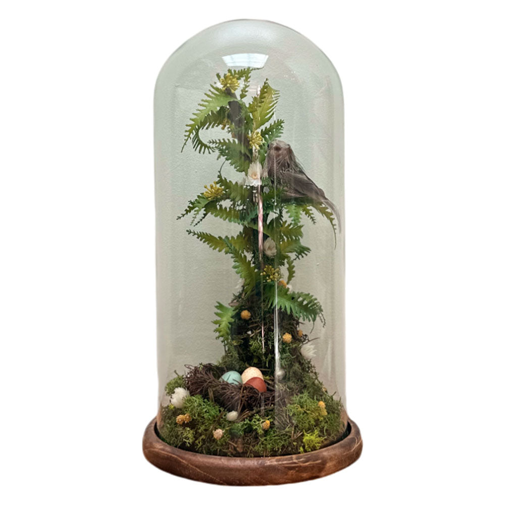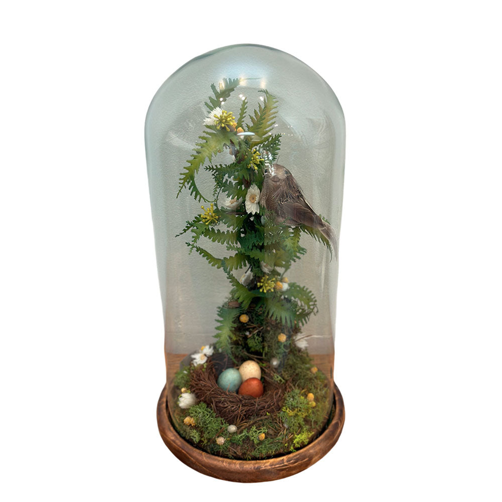 Mini mundo con nido de rattan tejido a mano y pájaro tallado a mano.