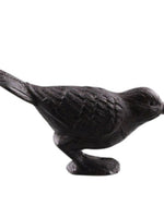 Figura de pájaro posado elabroada de hierro fundido con un acabado natural oscuro. Puedes usarlo como apoyalibros, pisapapeles, decoración de centros de mesa o repisas.