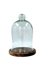 Campana redonda con base de madera. Ideal para decorar una mesa lateral o repisa. Compleméntalo con nuestros accesorios de decoración.