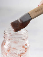 Cuchara de madera de haya con espátula y medidor cumple una función triple: La cabeza de madera es perfecta para batir, revolver y mezclar ingredientes, mientras que el mango tiene una punta de silicona que sirve como raspador de frascos y espátula. El diseño de la cabeza de la cuchara no es solo decorativo, el círculo más pequeño indica ½ cucharadita, el del medio es 1 cucharadita y el círculo más grande mide una cucharada.