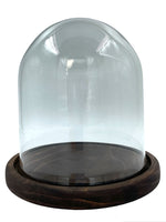 Fanal redondo con base de madera. Ideal para decorar una mesa lateral o repisa. Compleméntalo con nuestros accesorios de decoración.