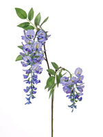 Flor artificial con pétalos hechos de seda, tallo de alambre recubierto en plástico y hojas de tela con recubrimiento impermeable.