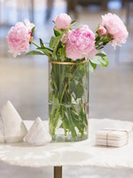 Este cilindro combina un elegante vidrio con un borde de latón para una presentación elegante. Perfecto para exhibir arreglos florales, añade un toque de sofisticación a cualquier espacio. Ideal tanto para decoración moderna como clásica, esta pieza realza la belleza de sus flores con su diseño atemporal.
