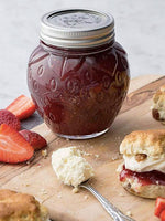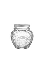 Precioso frasco de vidrio con forma de frutilla para conservar tus mermeladas favoritas. Incluye tapa metalica para cierre al vacio.