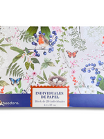 Individuales de papel con diseño botánico y frutal; ideales para una mesa entretenida y almuerzos al aire libre, el complemento ideal para tu mesa.