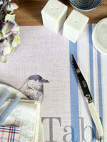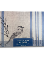 Individuales de papel con diseño simple en tonos celeste y neutros, ideales para una mesa entretenida y almuerzos al aire libre, el complemento ideal para tu mesa.