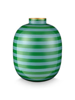 JARRÓN DE METAL CON RAYAS VERDES 32CM