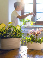 Este macetero puede contener flores, hierbas aromáticas, fresas silvestres, cualquier cosa que se pueda cultivar en macetas. Además, la estética y los colores del macetero lo hacen apto para cualquier ambiente, desde la encimera de la cocina hasta el baño, desde el balcón hasta el salón!