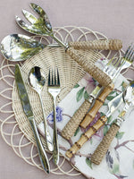 Set de servir hechos a mano en India, de hacer inoxidable y ratán. Combínalos con nuestros cubiertos y set de quesos!