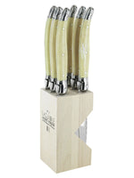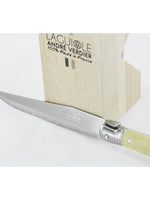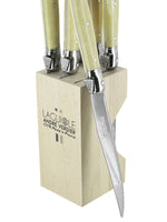 Elaborados con maestría en acero inoxidable, con refuerzos de acero inoxidable, mangos de cinco remaches en resina de alta resistencia color hueso y la tradicional abeja Laguiole. La construcción de espiga completa garantiza un equilibrio de experto y una durabilidad superior....