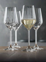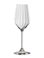 Spiegelau ha creado la serie Lifestyle que es elegante y atemporal, siguiendo la tendencia que esta de moda del cristal óptico. La copa de champagne es la copa perfecta para adaptarse a una variedad de espumantes. Sin duda esta copa le dará un toque de elegancia y modernidad a tu mesa. El set incluye 4 copas.