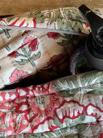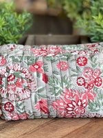 Estuche con exterior de tela, forro interior de algodón y cierre, ideal para guardar sus artículos imprescindibles y elementos de maquillaje.