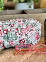 Estuche con exterior de tela, forro interior de algodón y cierre, ideal para guardar sus artículos imprescindibles y elementos de maquillaje.