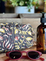 Estuche con exterior de tela, forro interior de algodón y cierre, ideal para guardar sus artículos imprescindibles y elementos de maquillaje.