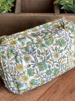 Estuche con exterior de tela, forro interior de algodón y cierre, ideal para guardar sus artículos imprescindibles y elementos de maquillaje.